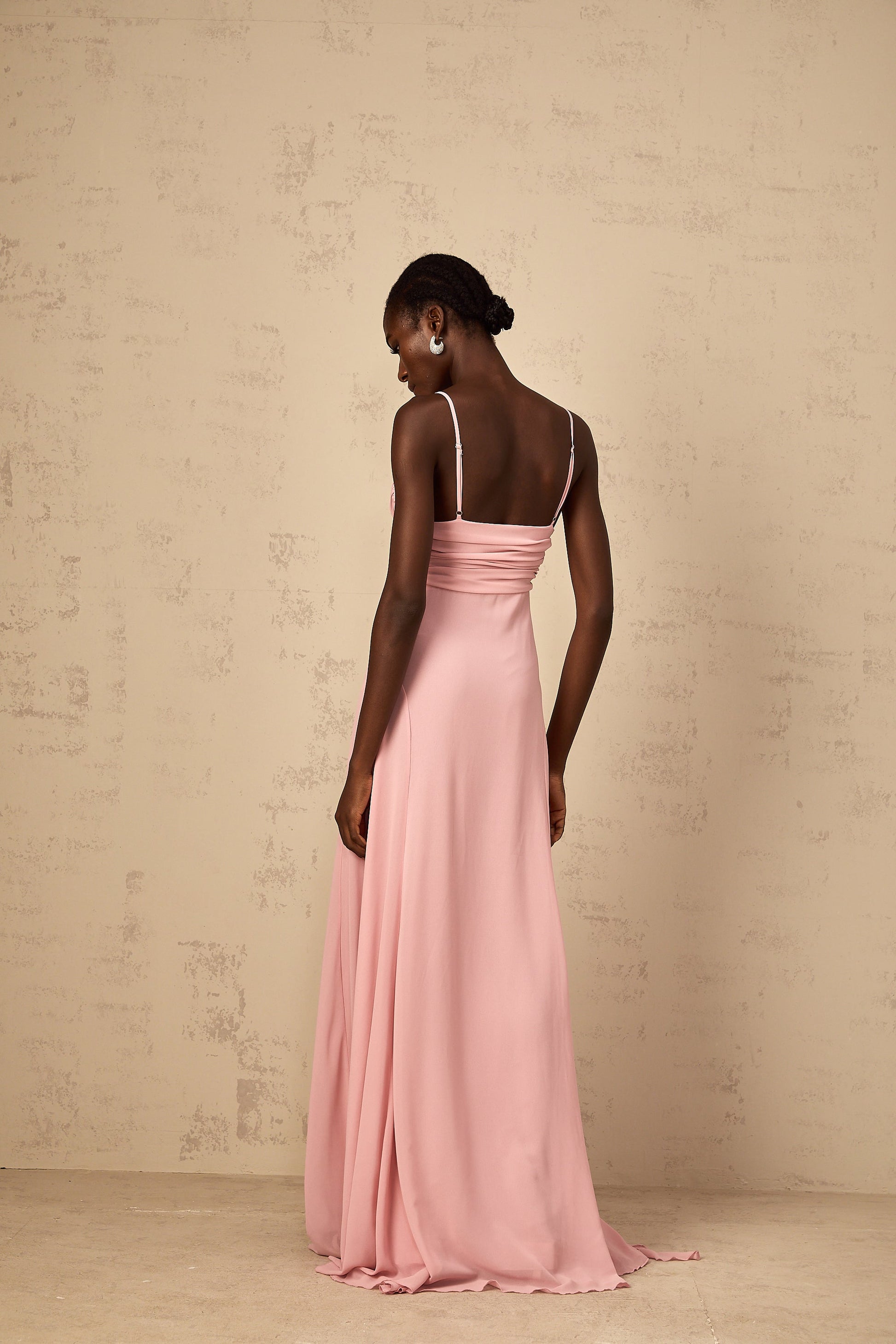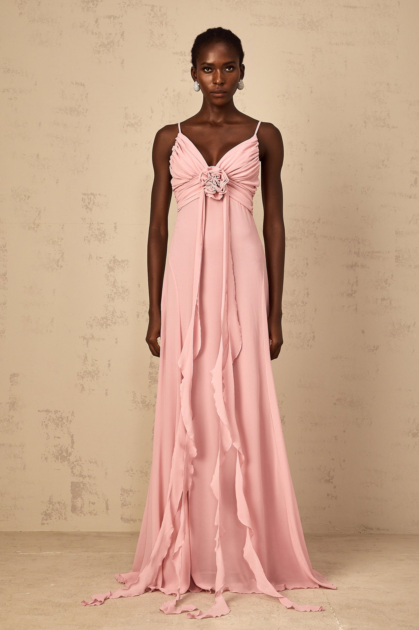 Ysandre Soft-Pink 3D Petal Tulle Maxi Dress