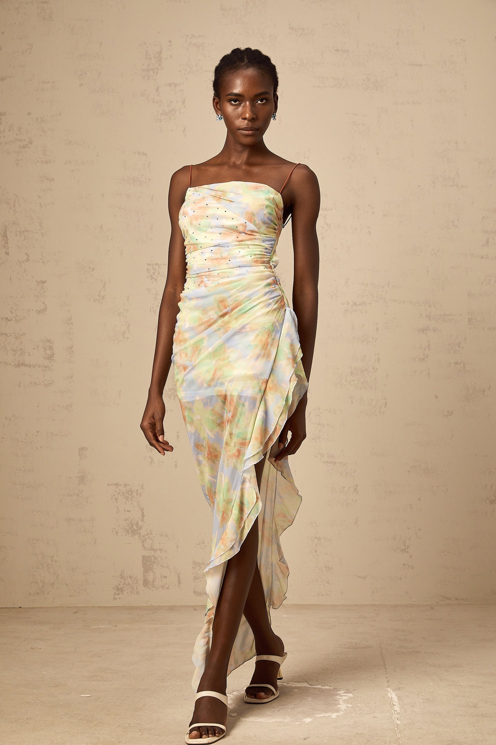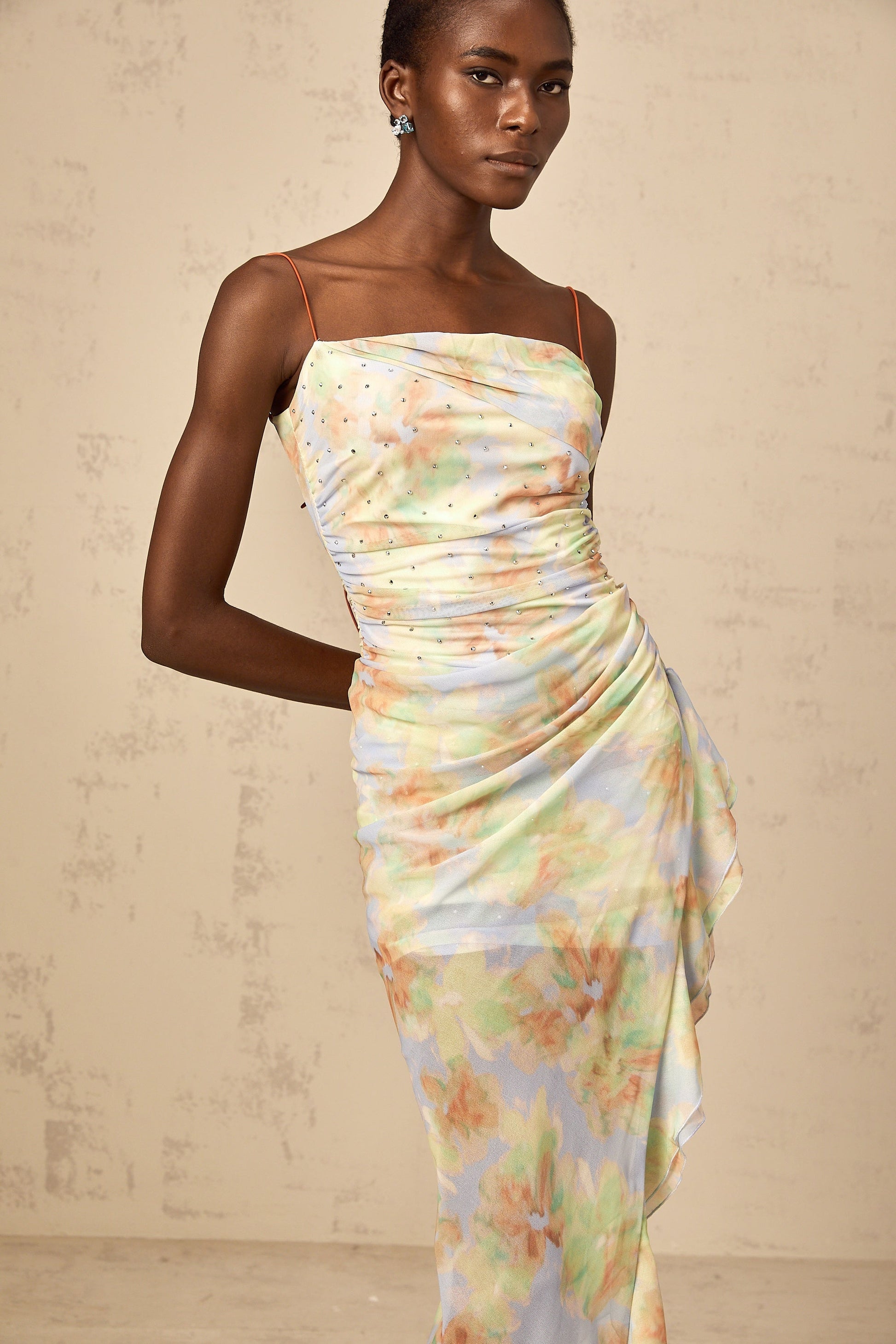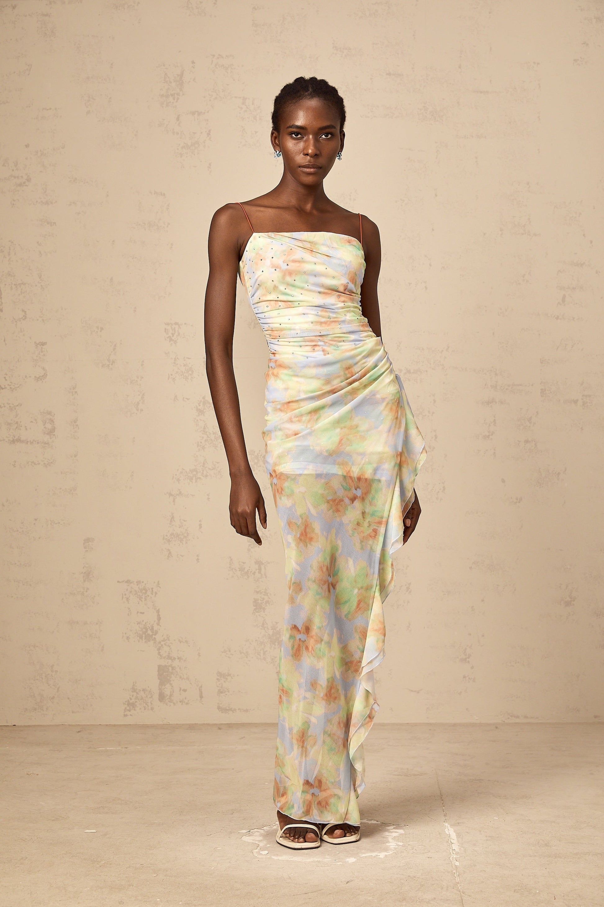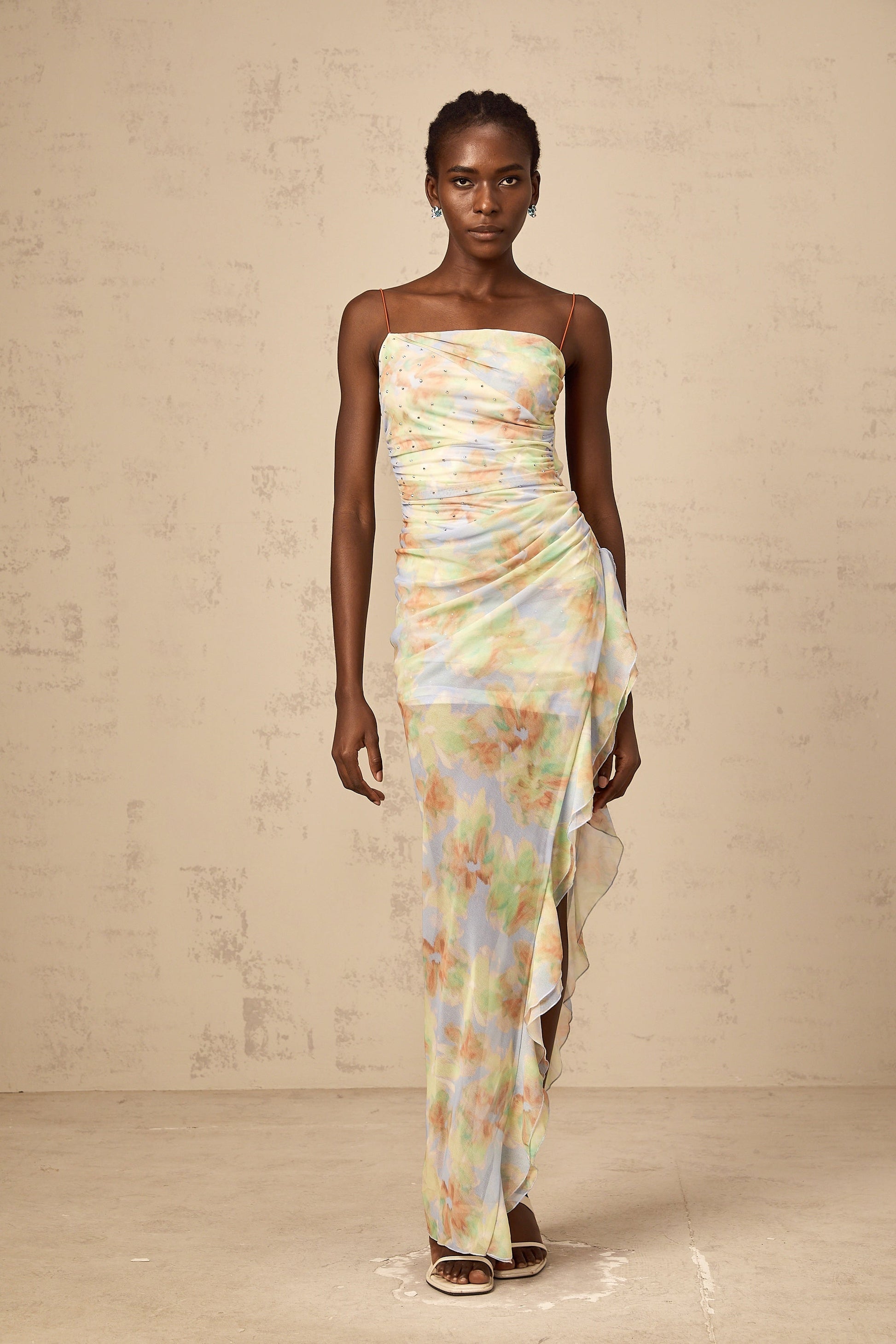 Yseult asymmetrical floral-print ruched maxi dress