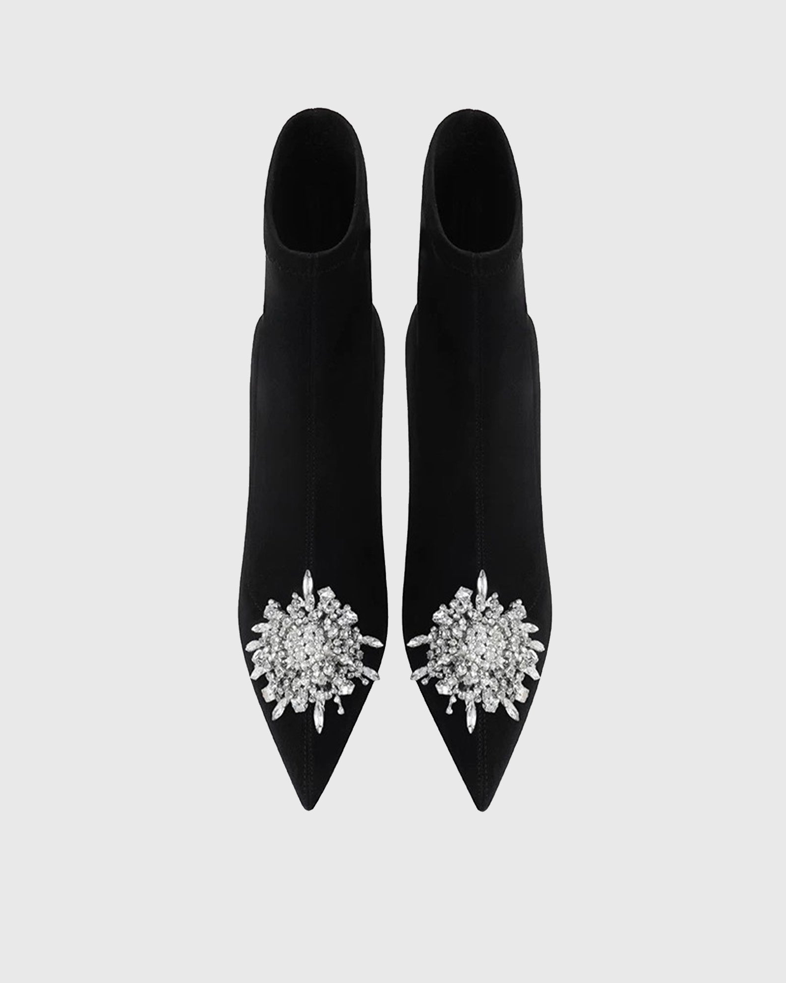 Zane Rhinestone Sunflower Velvet Ankle Boots