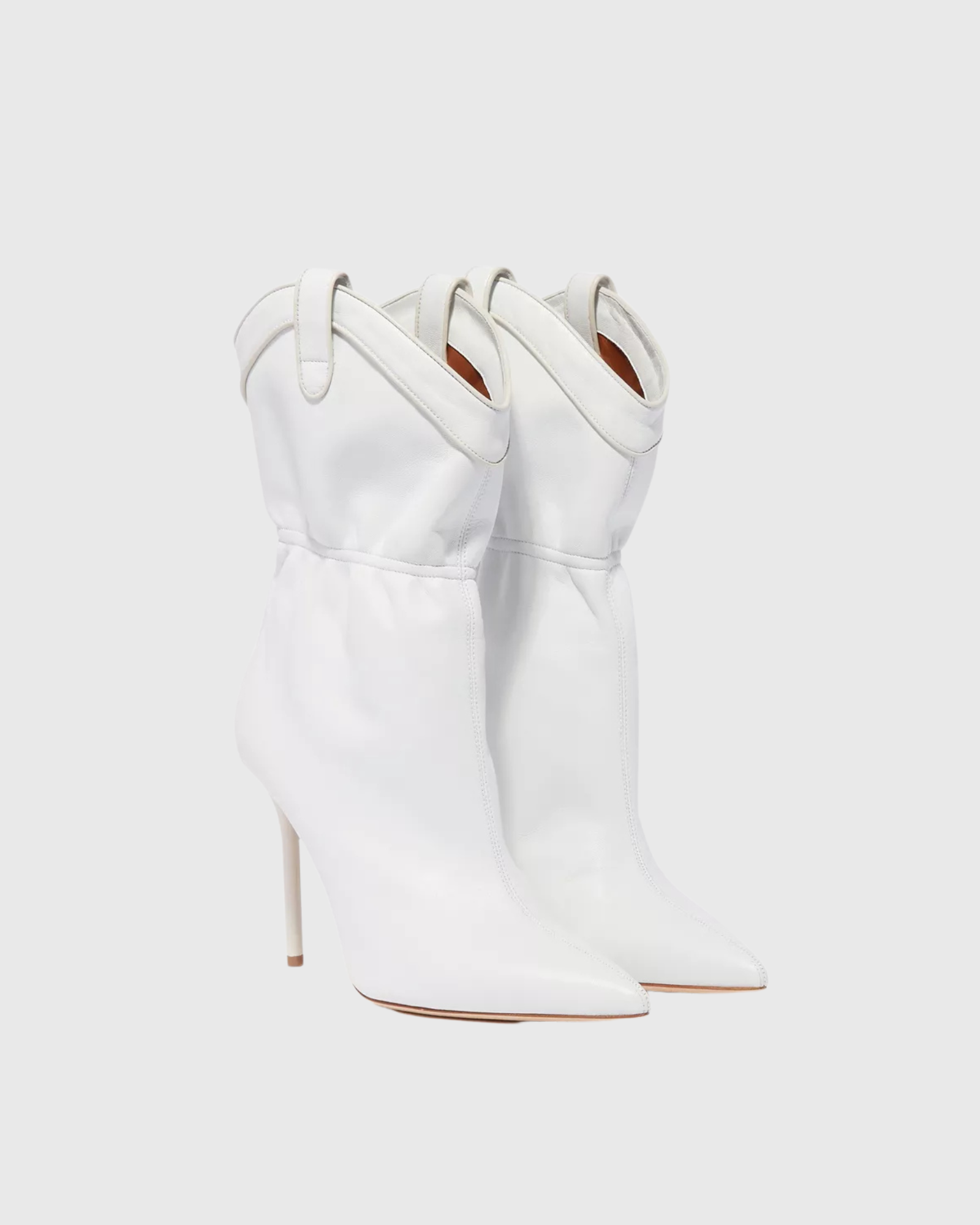 Step confidently in the Zayd Leather Cowboy Boots in White, crafted for both style and durability. The premium leather offers a sleek, clean look that pairs effortlessly with any outfit. Designed for comfort and long-lasting wear, these boots bring a bold statement to your wardrobe while ensuring all-day ease. Elevate your footwear collection with timeless Western-inspired flair.