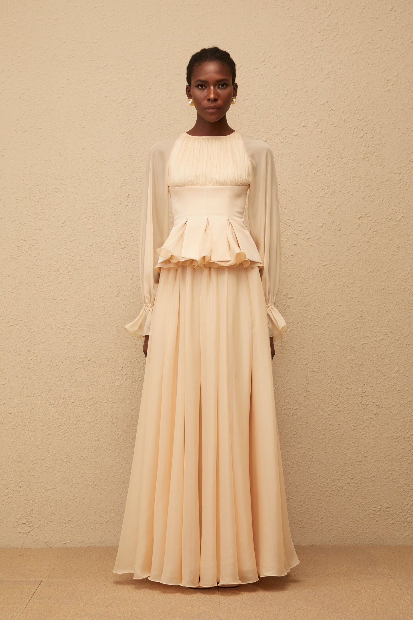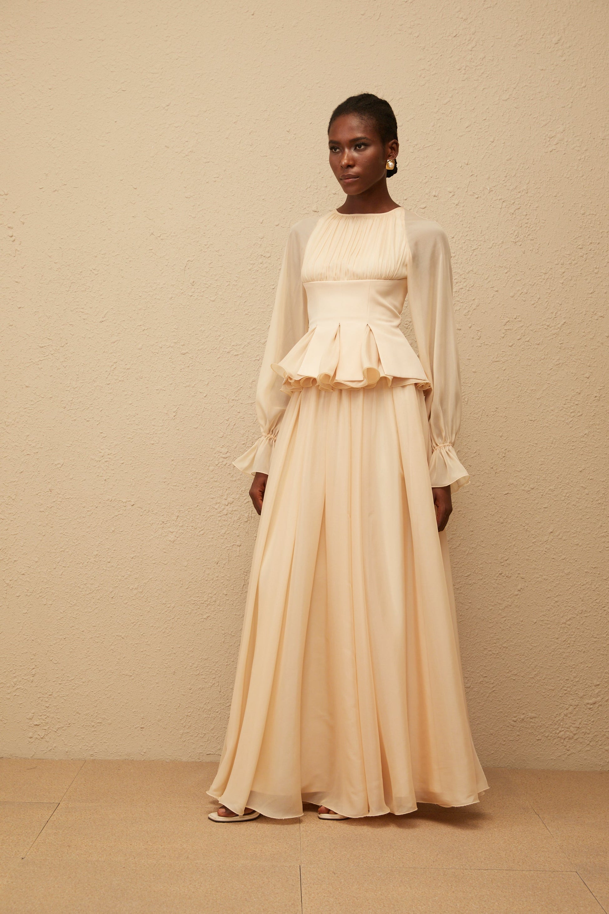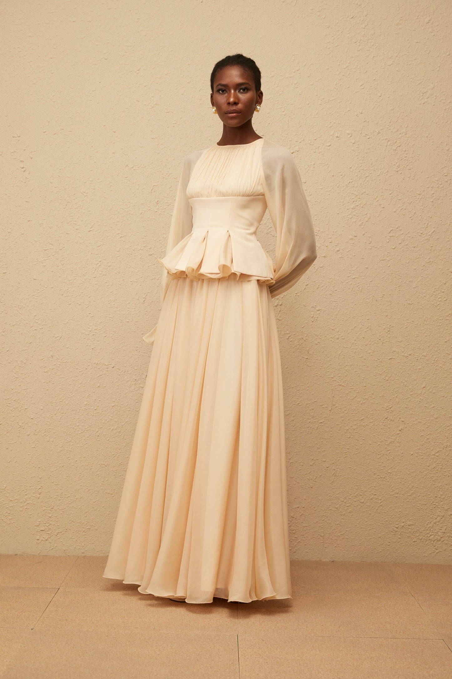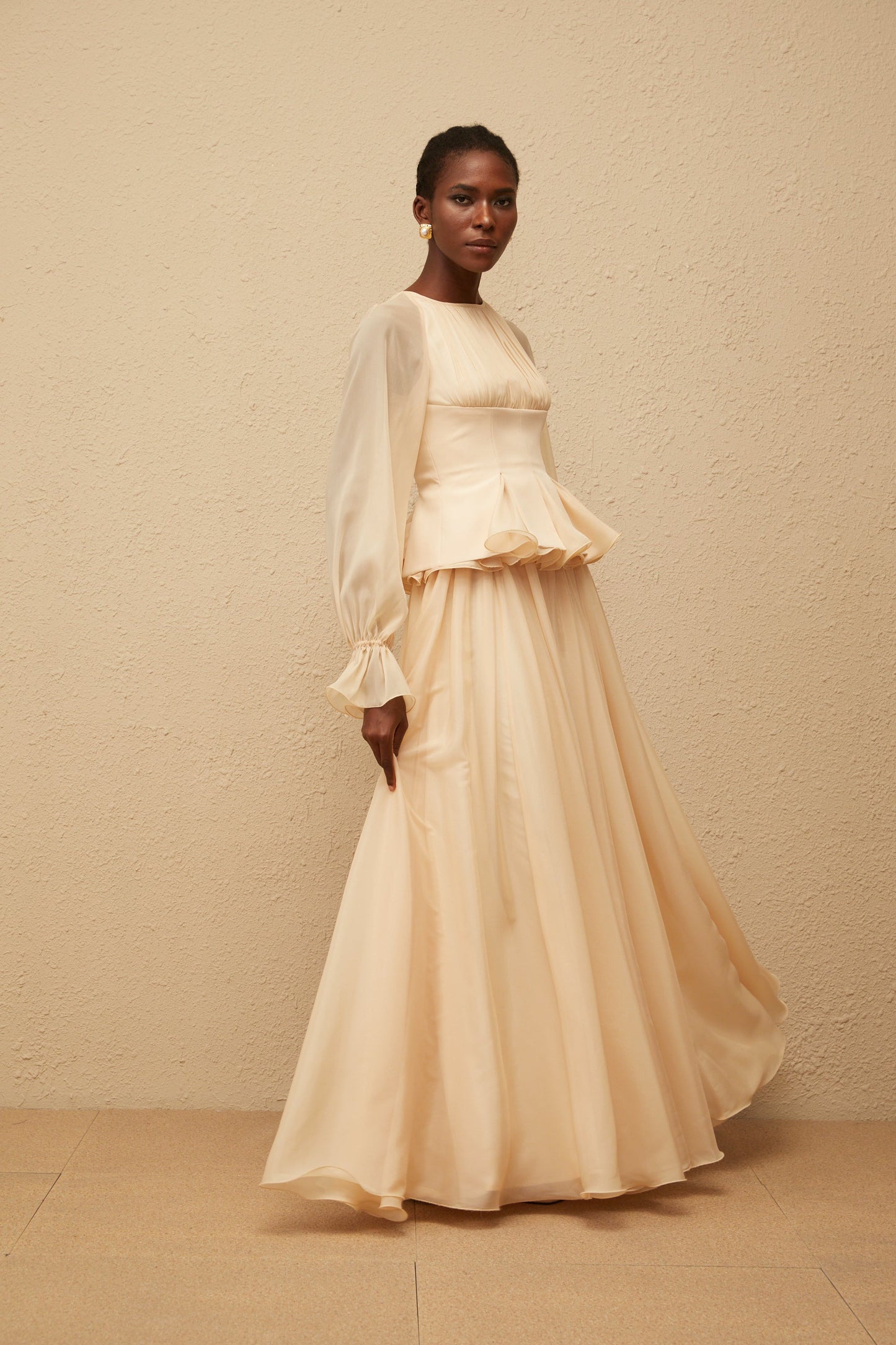 Zéphyrine Neutral Shirred Chiffon Blouse & Skirt Set